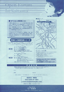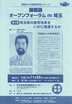 NPO法人師範塾は、子どもを取り巻く社会・教育環境を少しでも改善していきたいといった趣旨から「第2回師範塾オープンフォーラム・IN埼玉」を開催した。